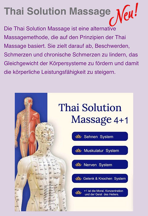 sind in Thailand ein integrales Element der traditoniellen Medizin und der Kultur des Landes. Die Urformen der Massage aus dem damaligen Siam, heute Thailand, stammen aus Indien und sind mit dem Buddhismus tief verwurzelt.